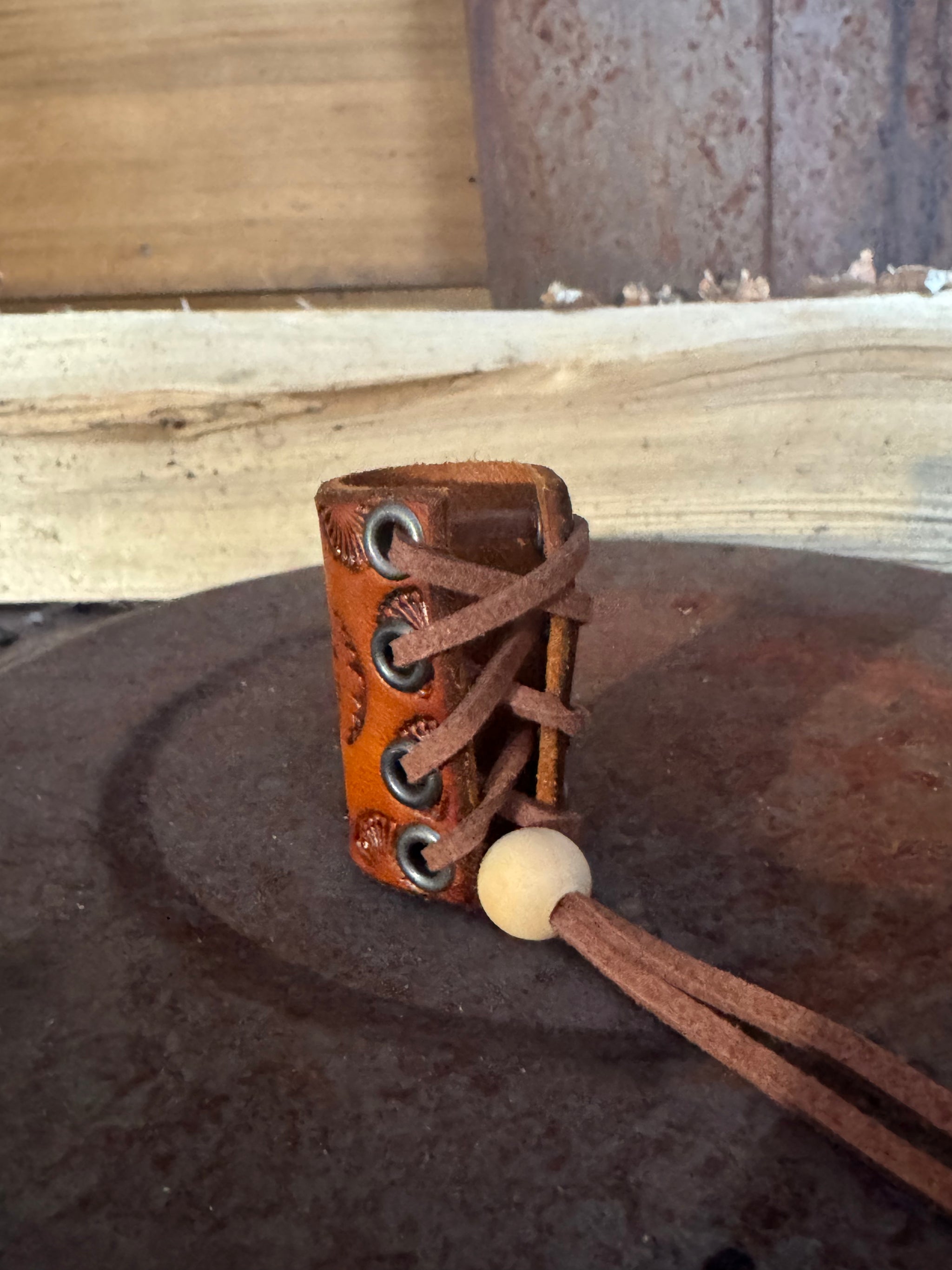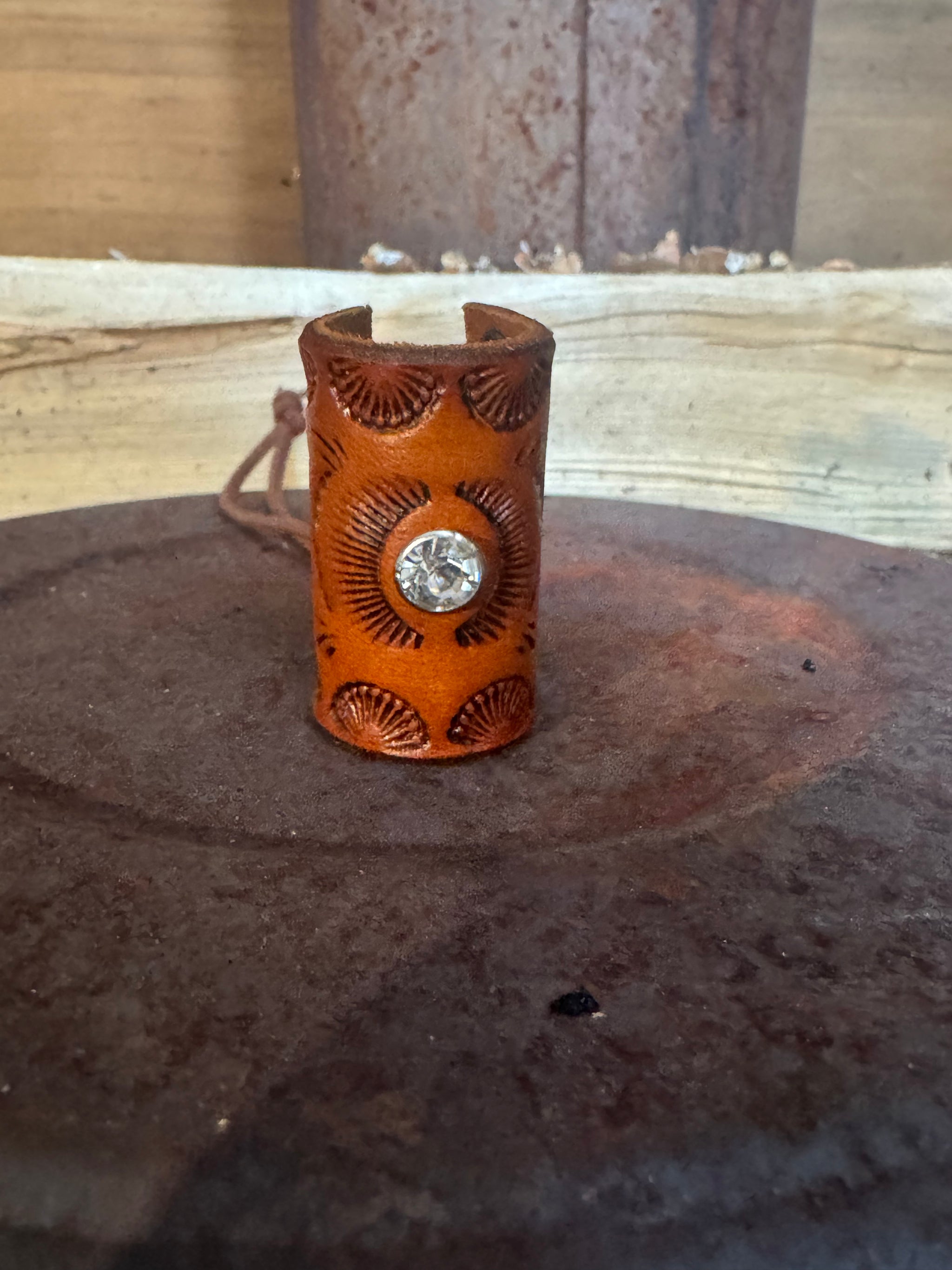 Saddle tan with big crystal stone and black corset back